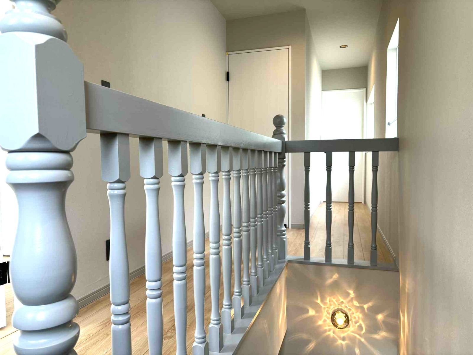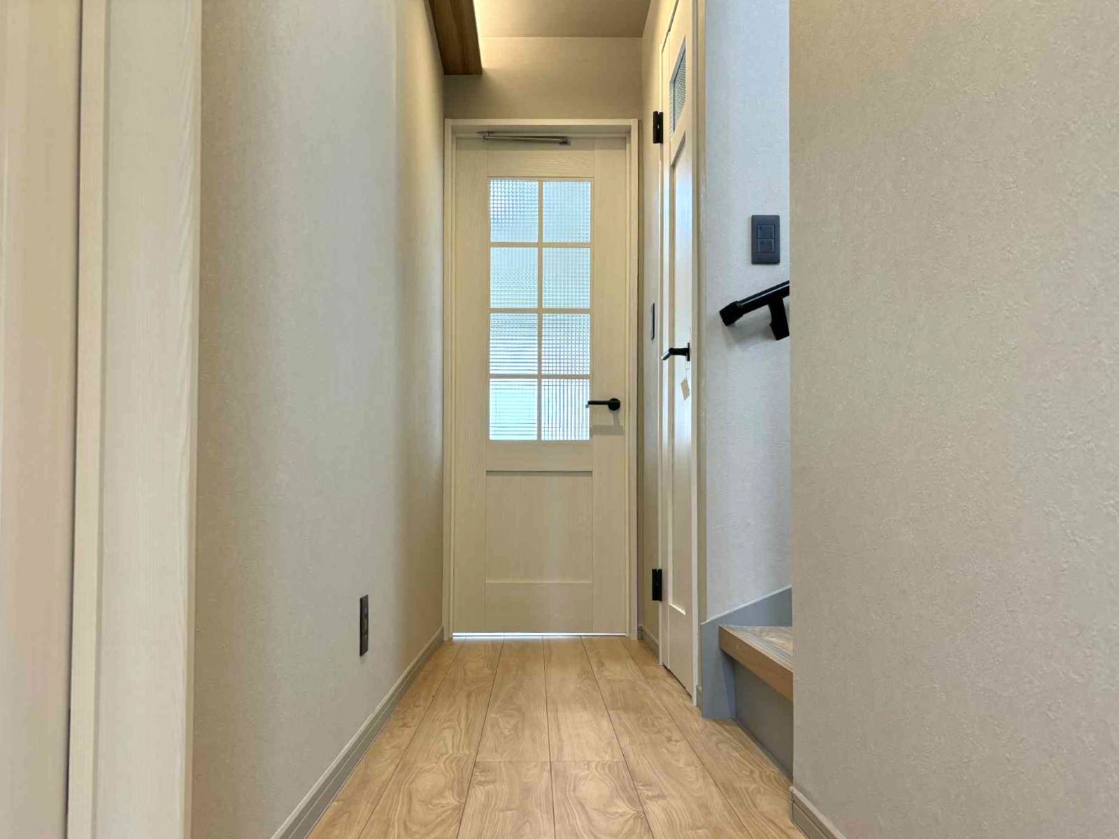 お家の中もパキッと白い壁と廊下やシューズボックスの下の間接照明がお洒落な感じ。