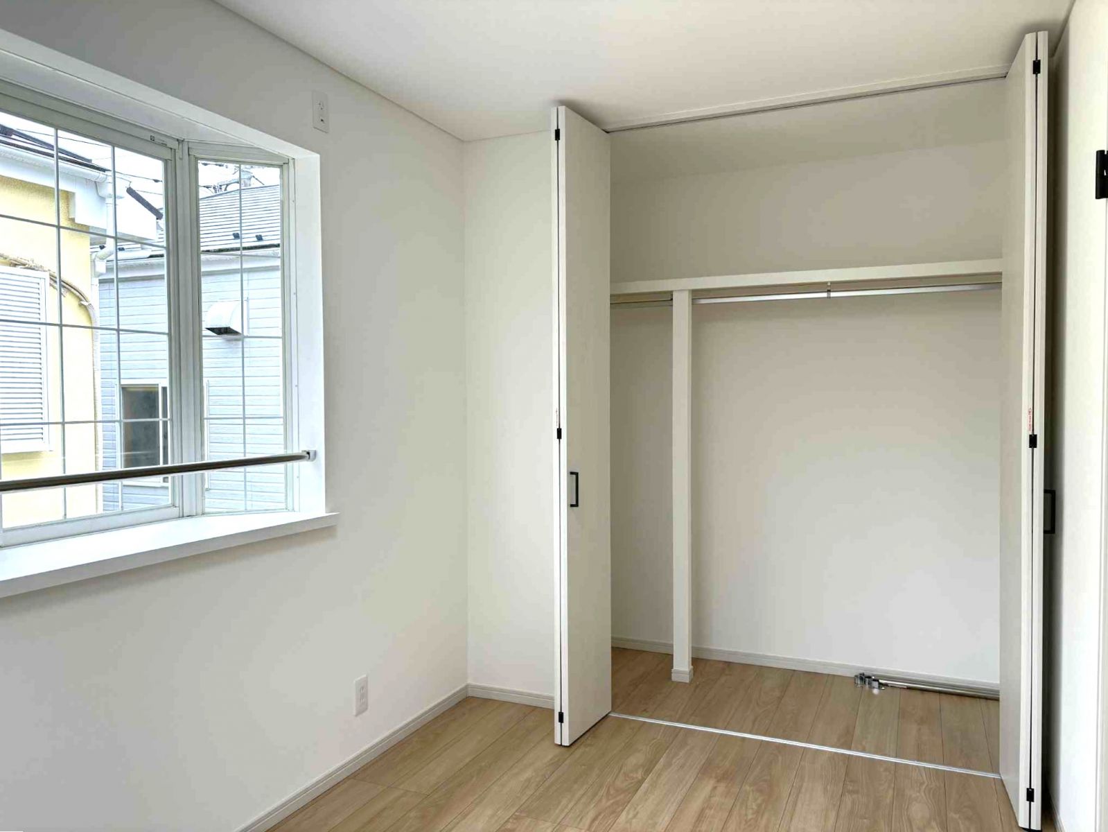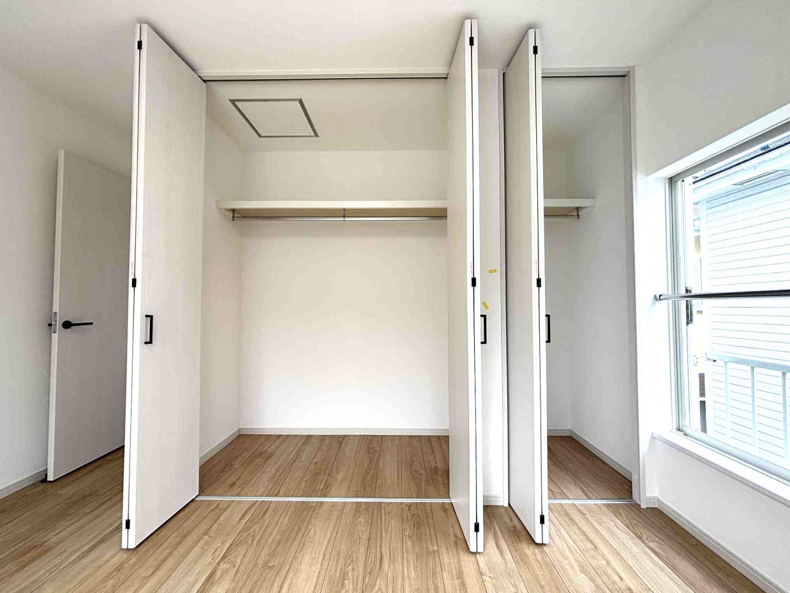 3つあるお部屋には全てクローゼットが付いているのですが、このお部屋のものは一間半分。奥行きもたっぷりございます。