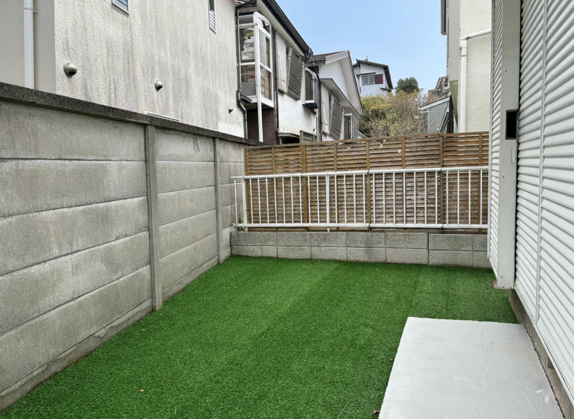 海から帰ってサーフボードを抱えてお庭にも行きやすい。