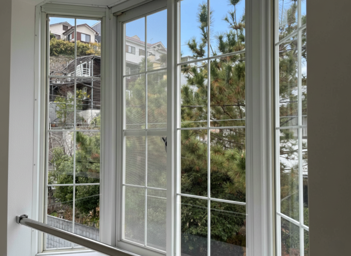 このお部屋には腰高の出窓が2つ。こちらは北側。