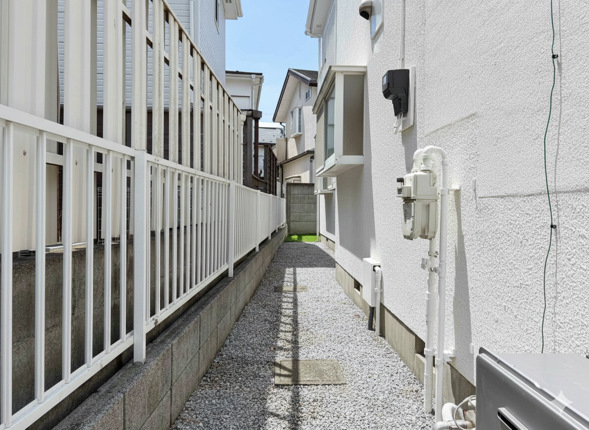 お家の横の通路は広め。