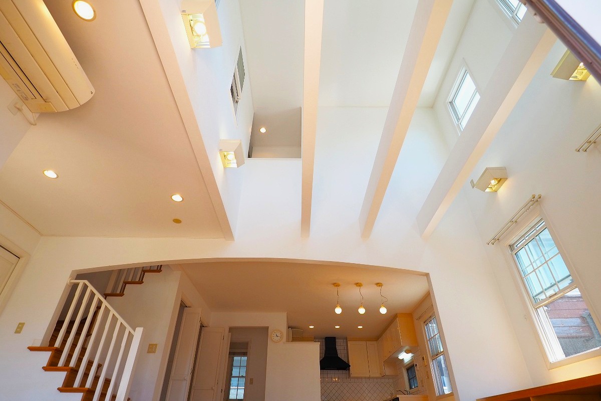 アクセントとなっている二階へと続く階段といい、吹き抜けのリビングといい