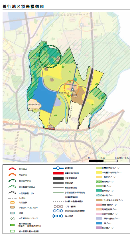 市のマスタープランでも黄色の住居ゾーンのすぐ隣には緑地や畑がふんだんにある。