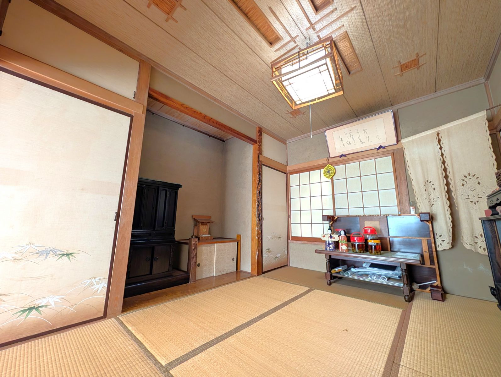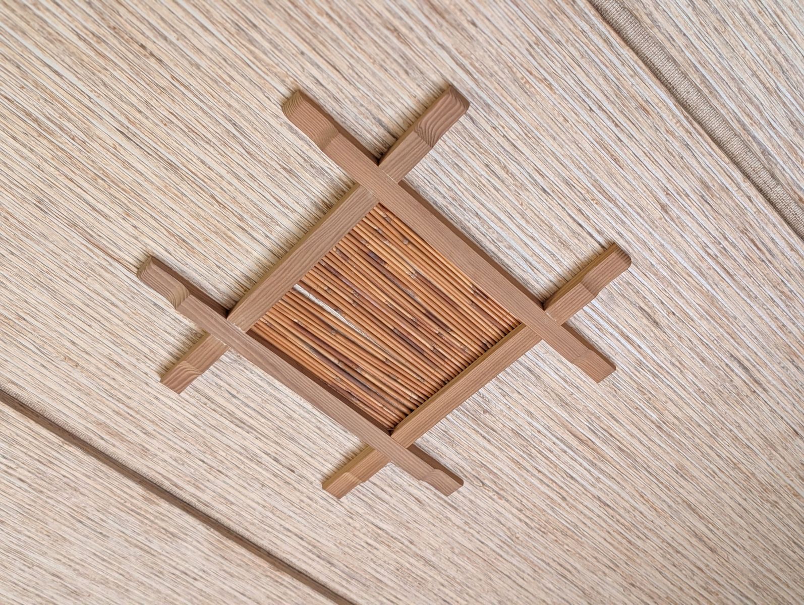 天井を見上げると、竹張りの飾り装飾