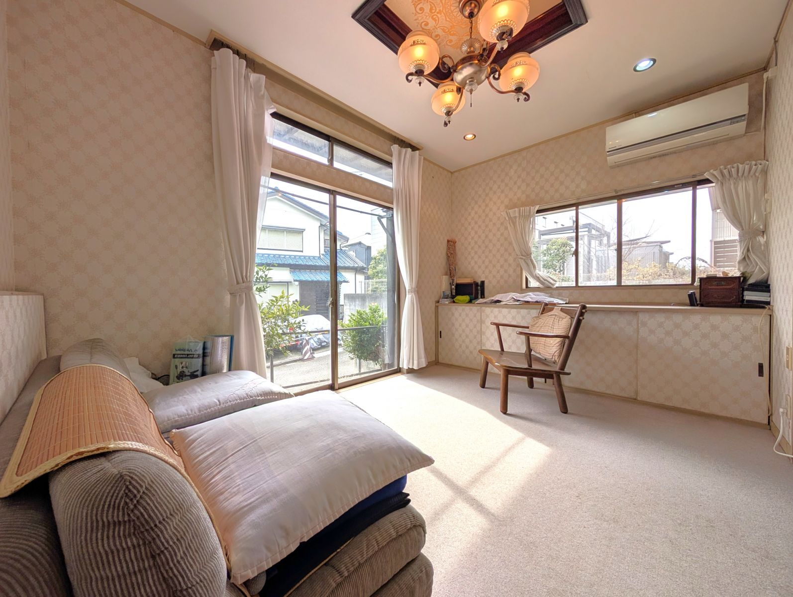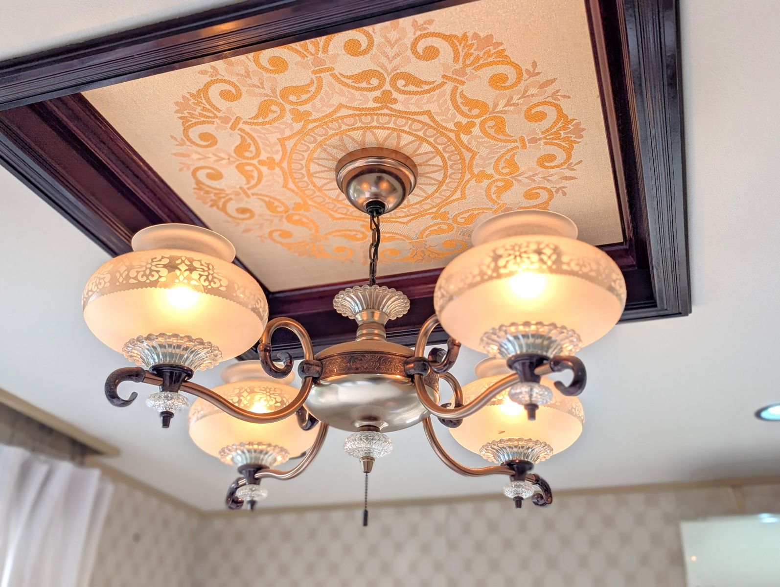 折り上げ天井にはまさに昭和レトロなシャンデリア。(これはCGじゃない)