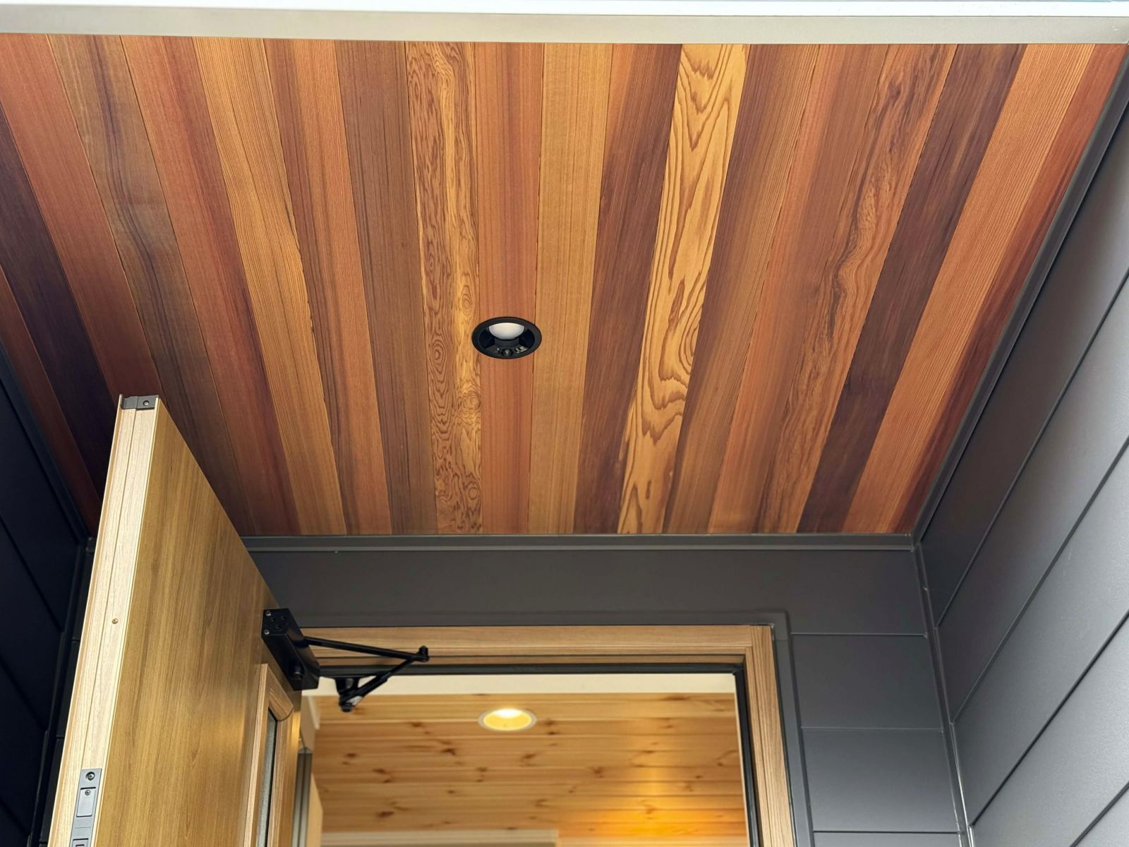 見上げればほら、無垢張りで入口からテンションが上がりますね、
