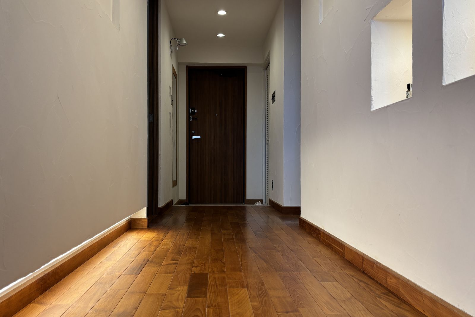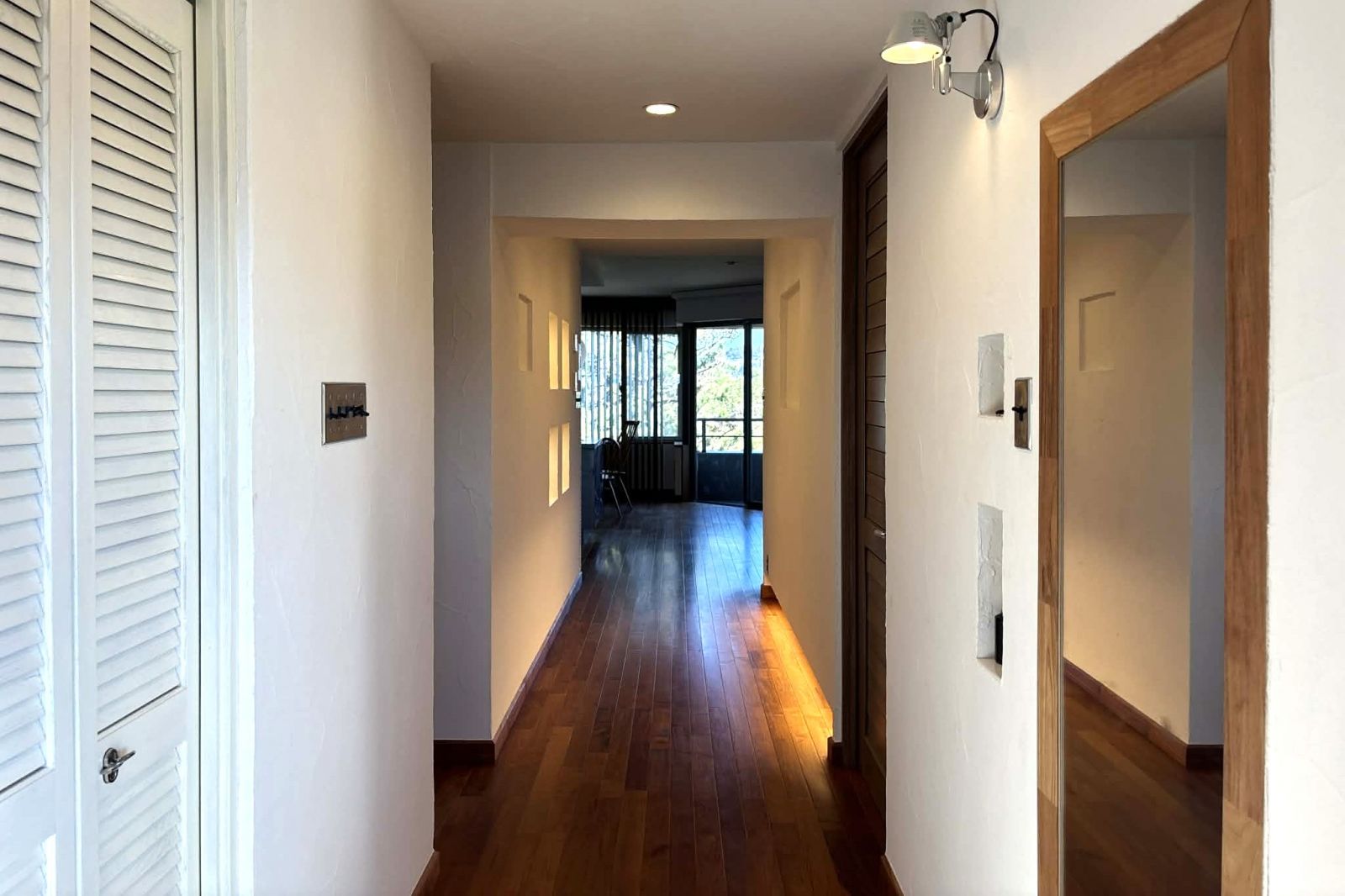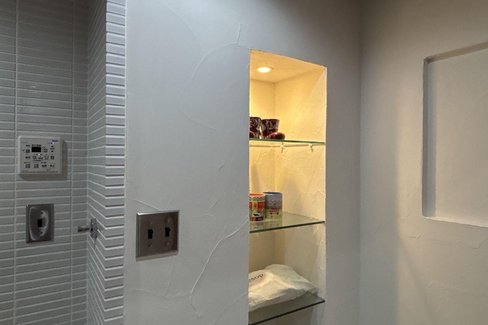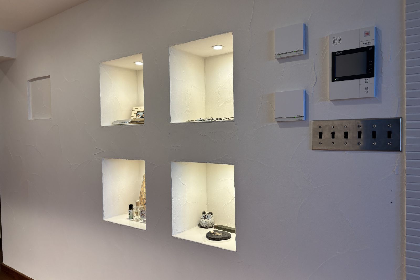 廊下にはライト付きのニッチがあります。