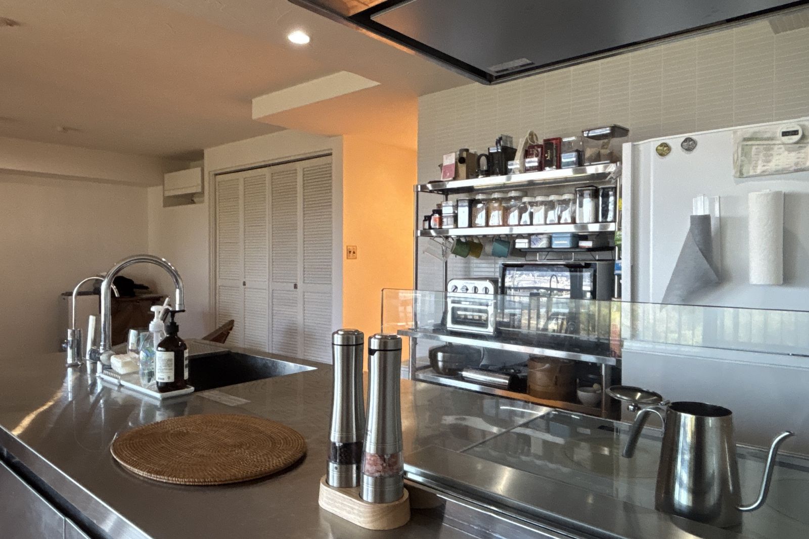 キッチンは、ステンレス製。水回りにはグローエ社製を採用。