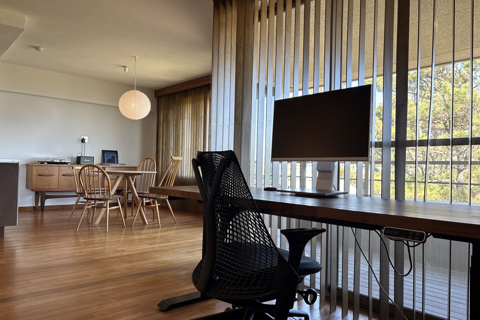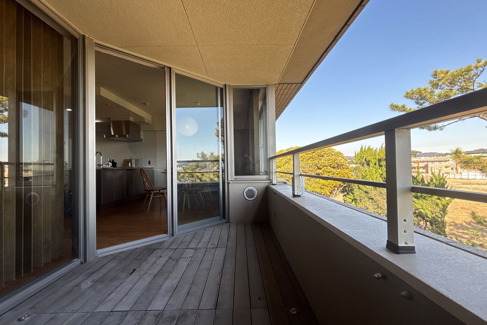 ルーバーを開けると大きな窓から開放的な景色を望みます。
