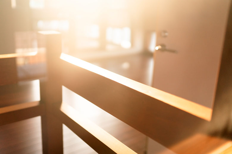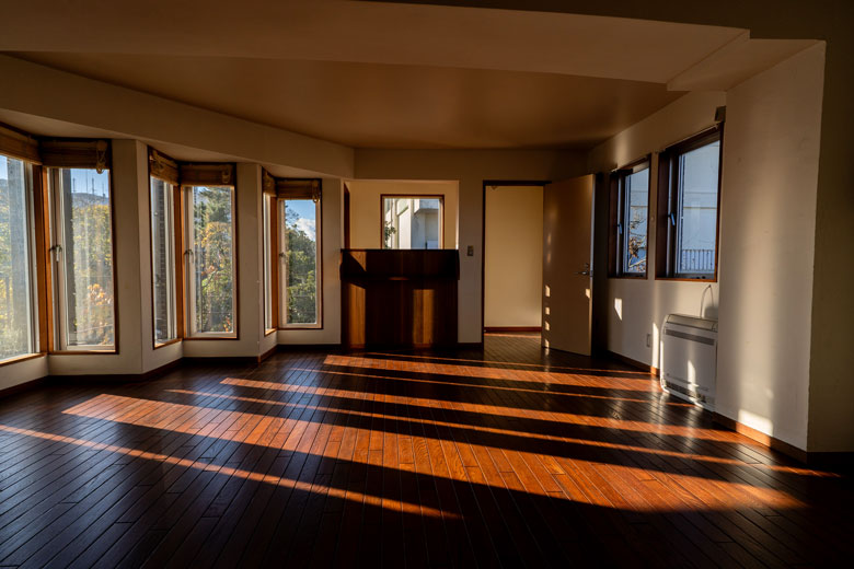 L字型の窓から射す光の陰影。