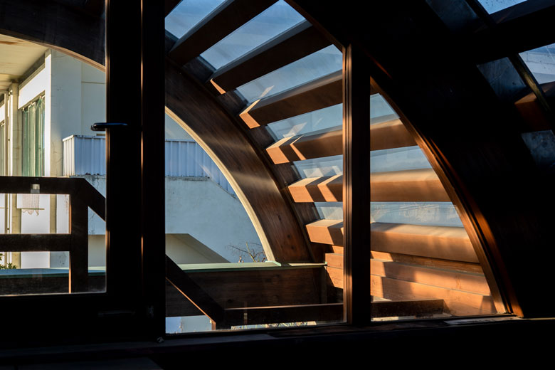 階段が広く緩やかで、テラスも広いので、美術館のような懐の深さを感じます。