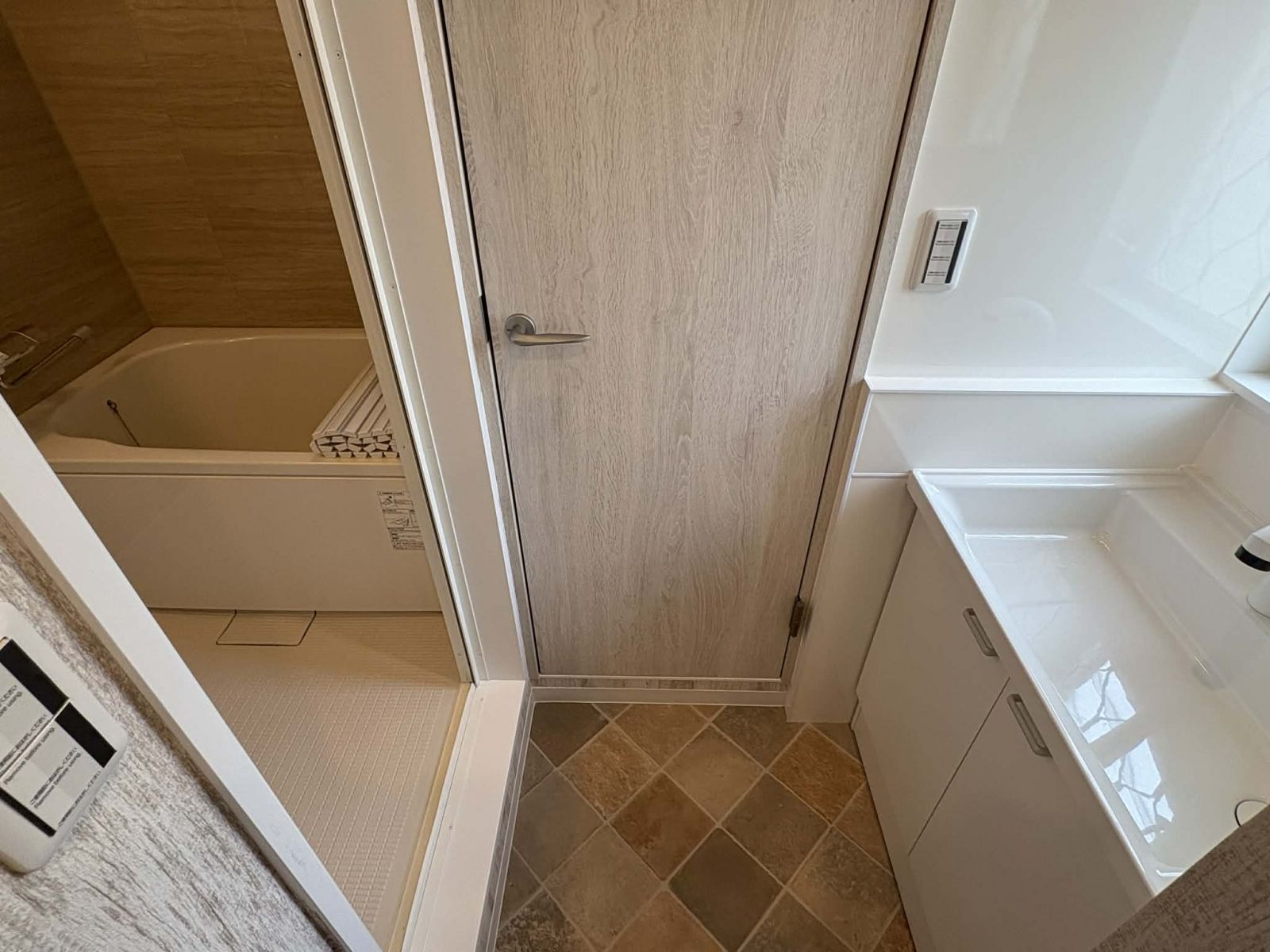 正面がお手洗い、左が浴室です。