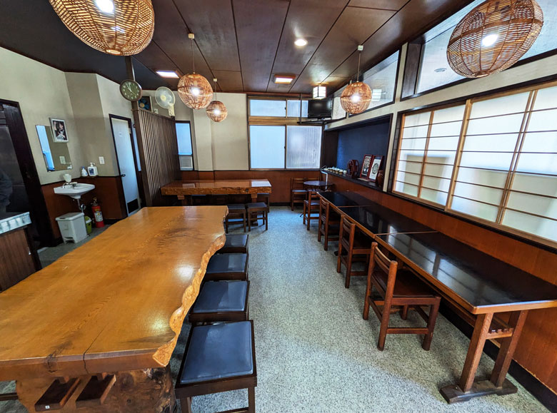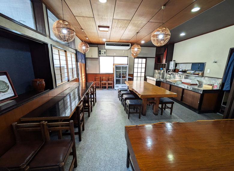 落ち着いた和の設え、使い込まれた木の温もり、常連客を迎えてきたテーブルー――