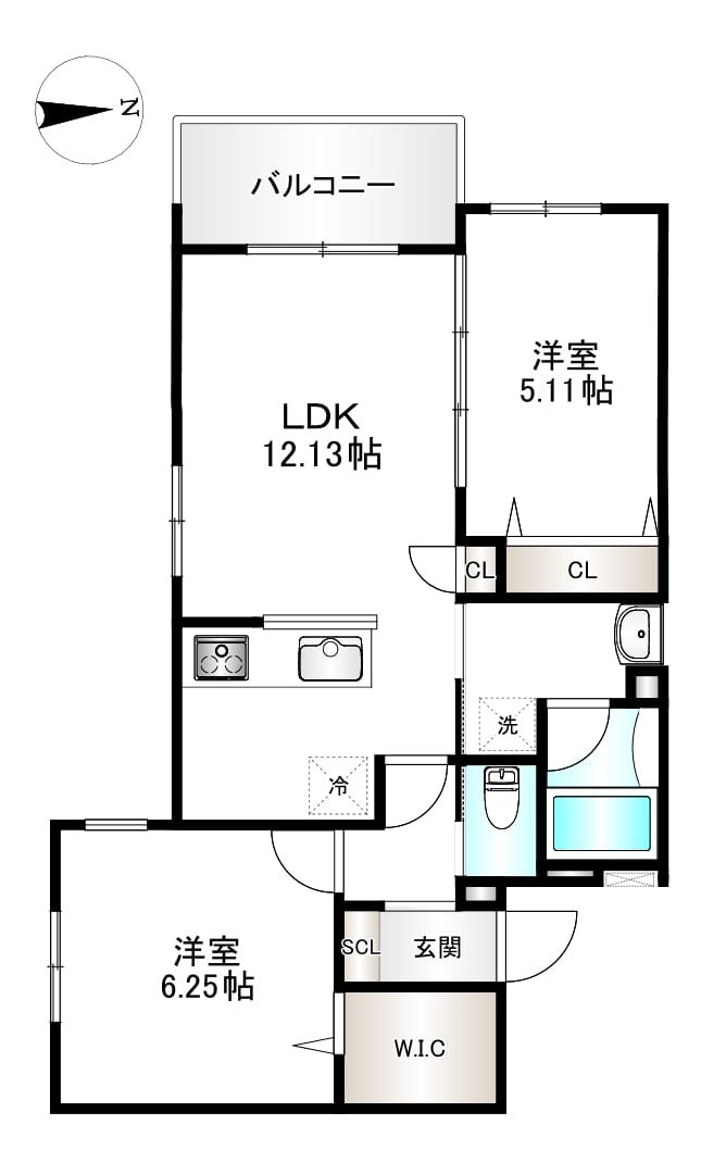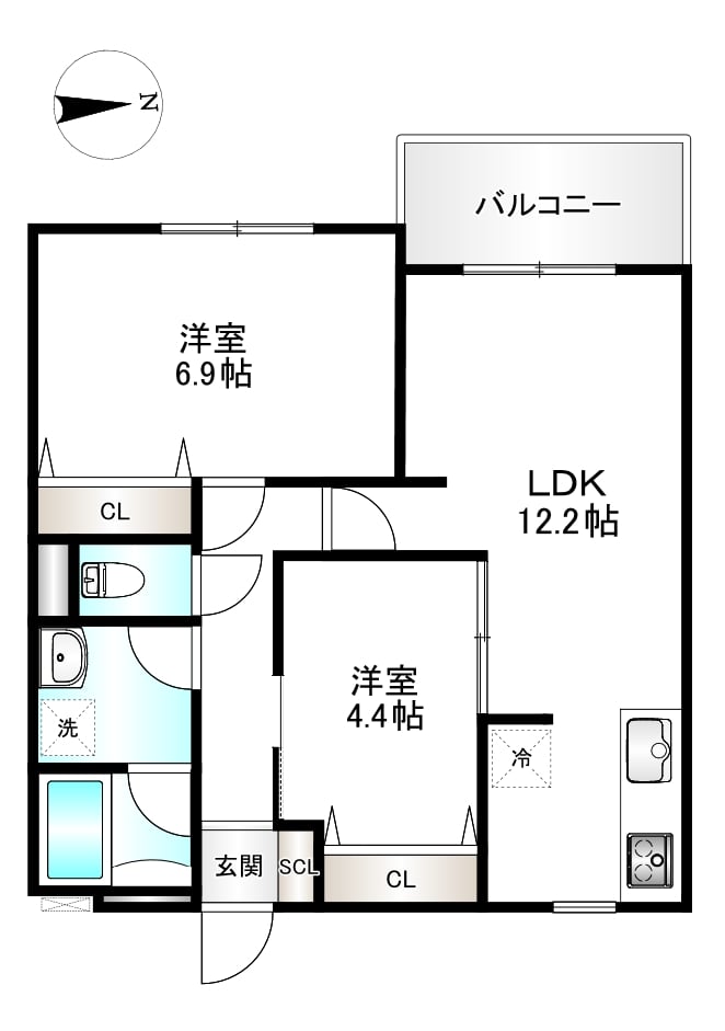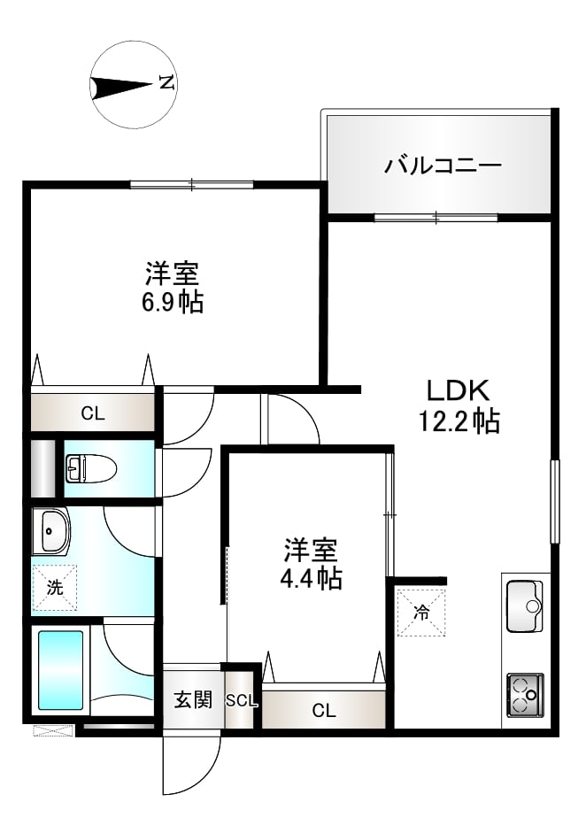 まずは101/202、102/202のタイプの室内を見てみましょう。